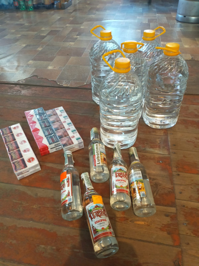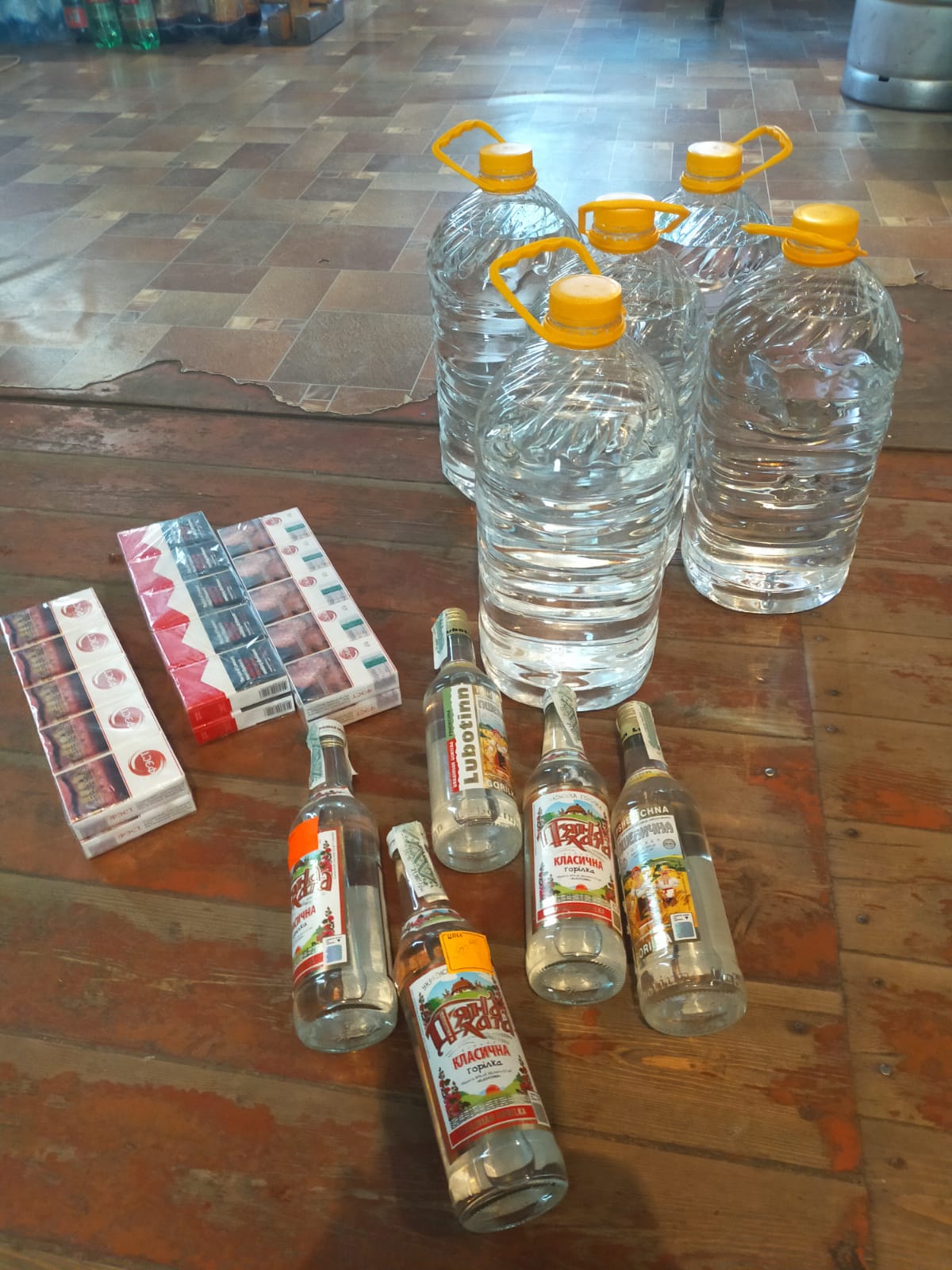 І де ж ті "450 пляшок фальсифікованої горілки з ознаками підроблення марок акцизного податку, понад 2200 пачок цигарок без акцизних марок, 120 л спирту"? На фото ми бачимо мішок капусти, ящик горілки, 3 блоки сигарет і 5 шестилітрових бутилів (30л) з рідиною прозорого кольору. "Какие Ваши доказательства?" (с)