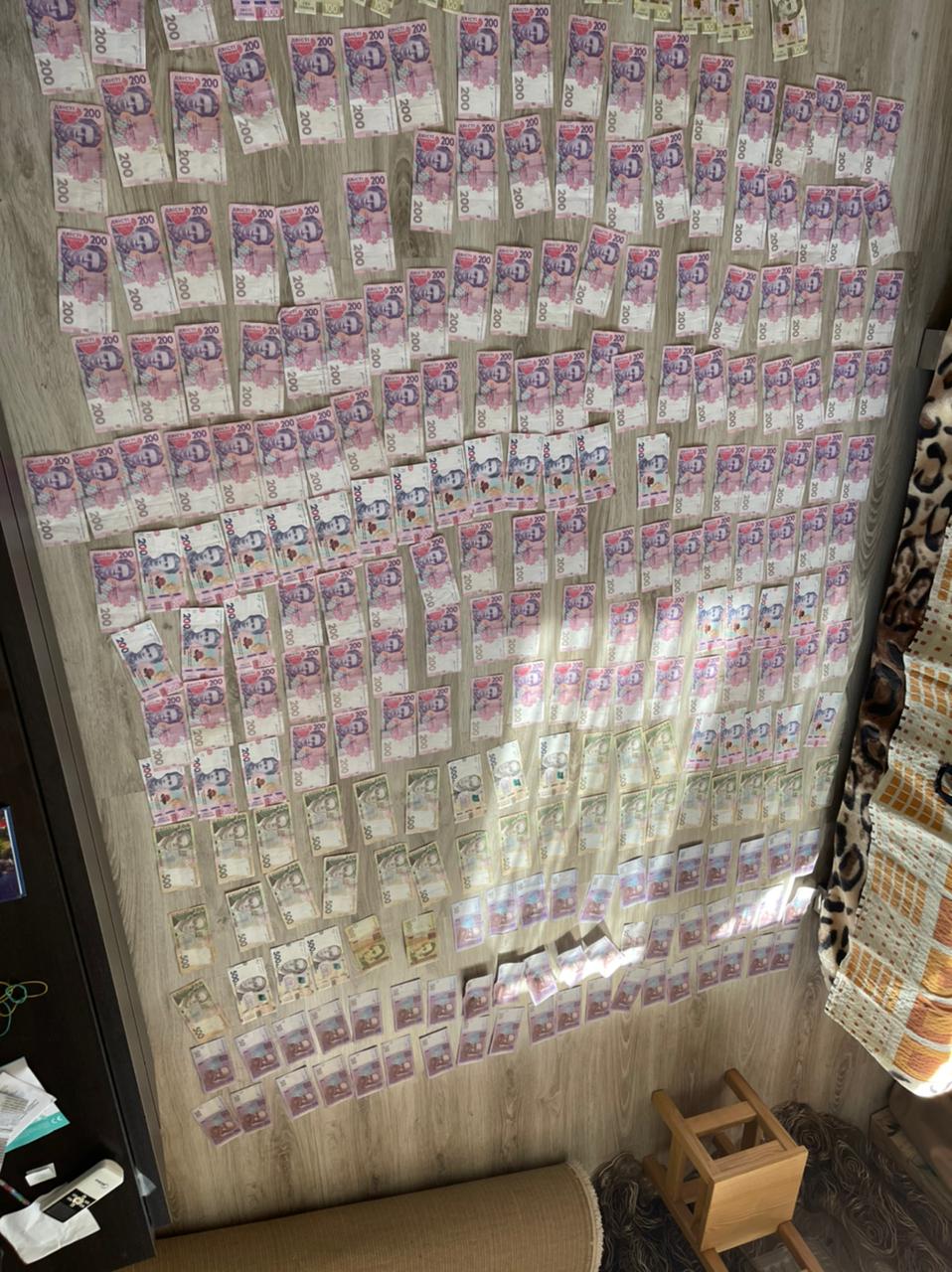 Під час обшуків виявлено та вилучено більше 110 тисяч гривень, 2210 євро та 7350 доларів США, близько 450 пляшок фальсифікованої горілки з ознаками підроблення марок акцизного податку, понад 2200 пачок цигарок без акцизних марок, 120 л спирту, мобільні телефони, банківські картки, транспортний засіб «VOLKSWAGEN LT 35» та чорнові записи, що підтверджують протиправну діяльність.