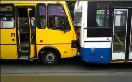 Як розповів водій тролейбуса, через технічні несправності він почав рухатися назад і вдарився у маршрутку №28. В той момент у тролейбусі перебувало чимало людей. Наразі інформації про постраждалих немає.