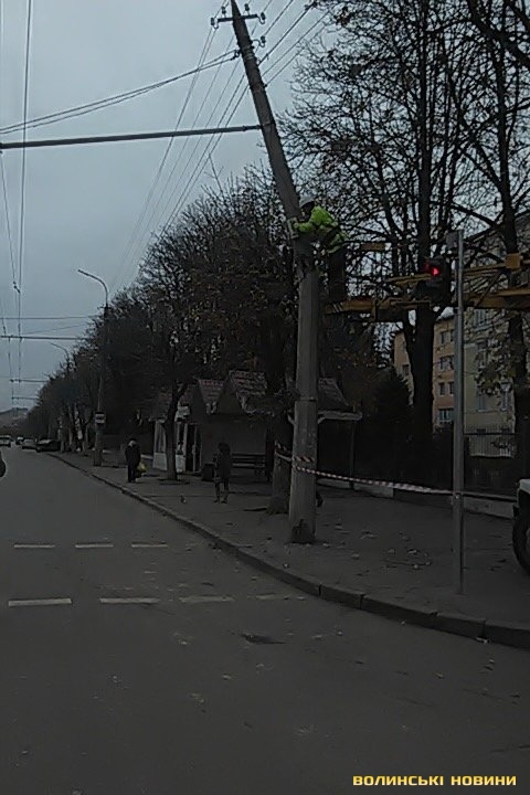 На проспекті Грушевського в Луцьку тролейбус зламав посередині стовп електроопори.