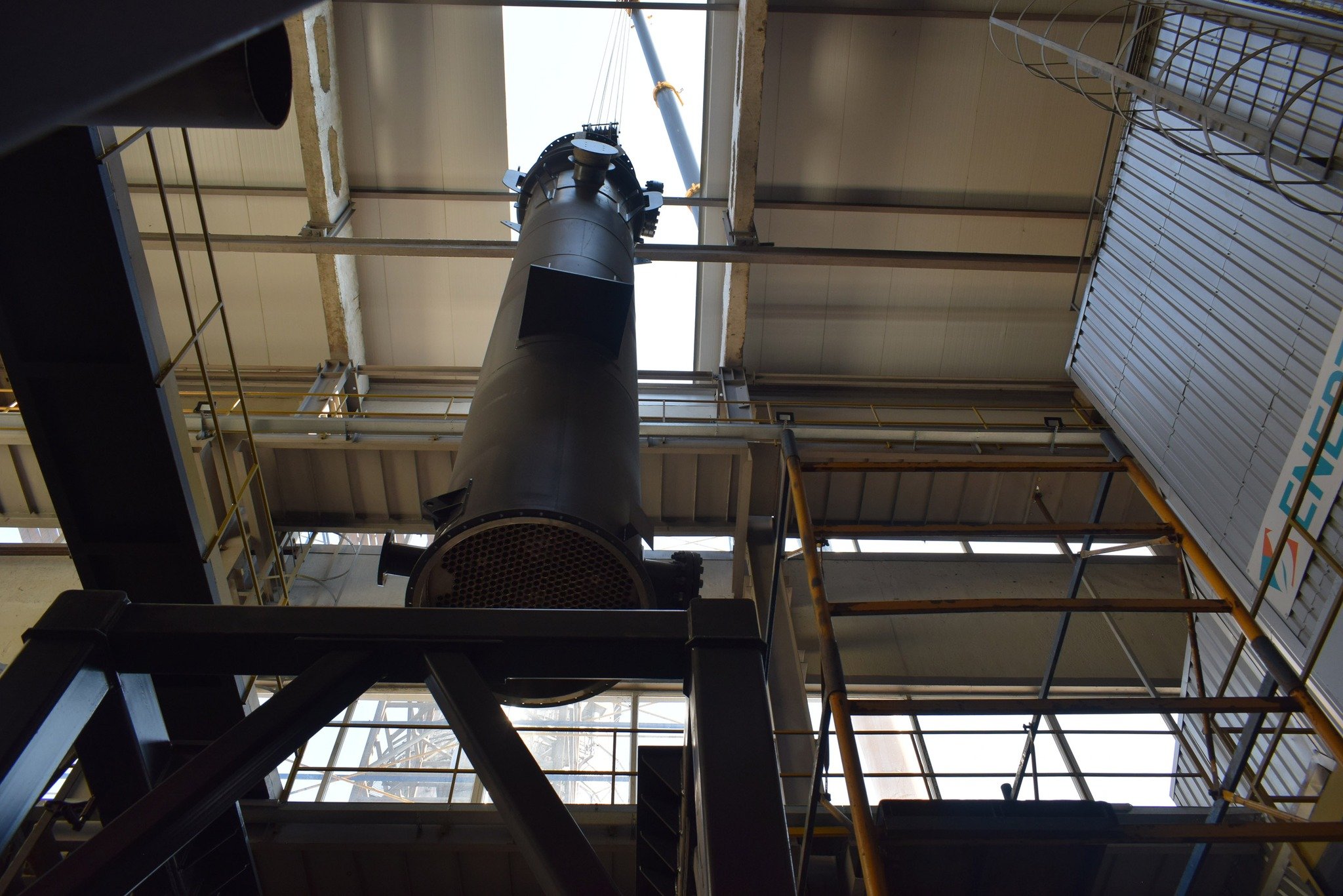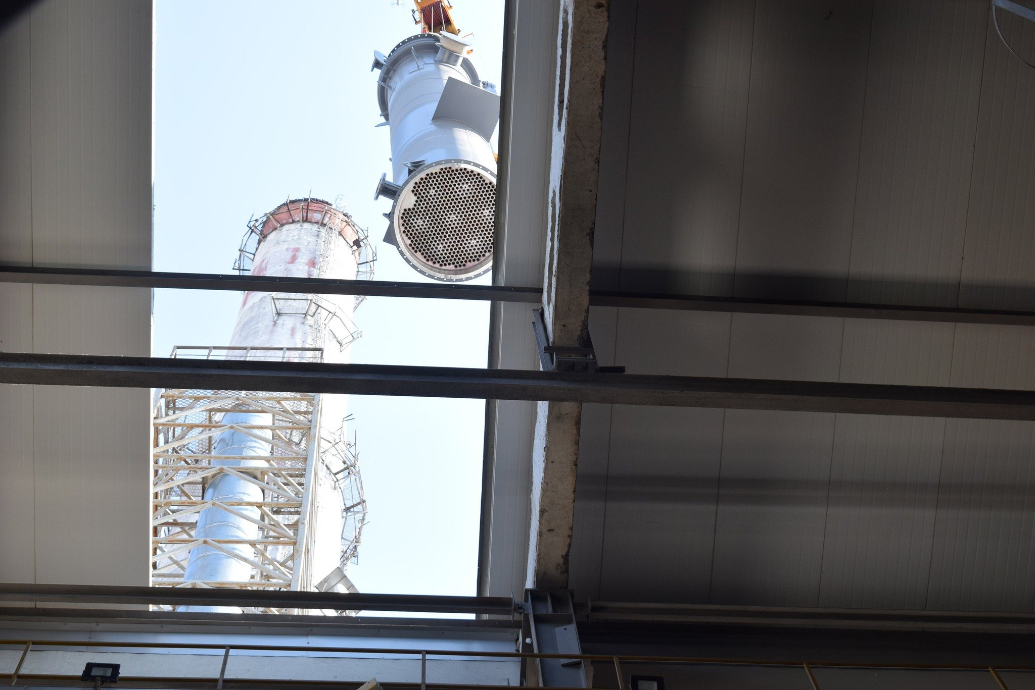 Складність реалізації проєкту полягає в тому, що монтаж проводять у котельні, яка працює. Крім того, для встановлення обладнання виникла потреба в частковому демонтажі покрівлі.Зокрема впродовж дня – з 09:00 до 13:00 – за допомогою 50-тонного автокрана у приміщенні котельні було змонтовано чотири складові установки. Найбільша з них – конденсаційна колона заввишки 8,5 м та завважки 8,9 т.