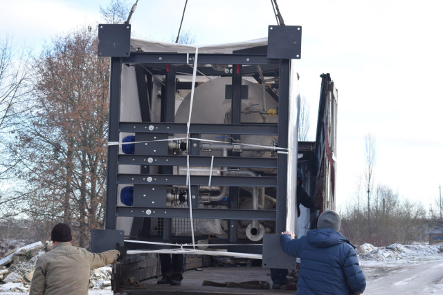 Відповідно до процедур НЕФКО, попередньо було проведено тендер, а нині на об’єкті активно виконують монтажні роботи. Напередодні, після завершення підготовчого етапу, було успішно встановлено основне обладнання конденсаційної установки.