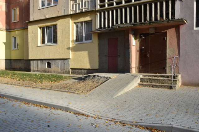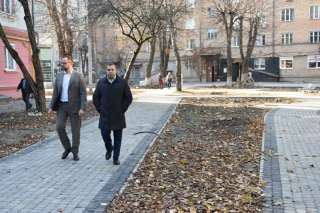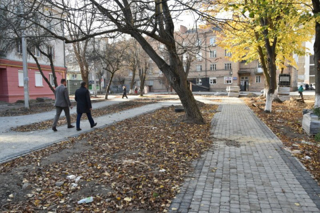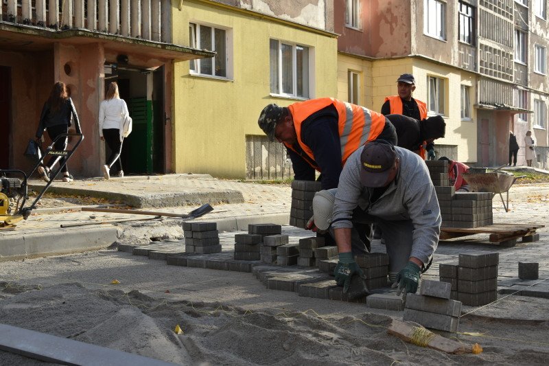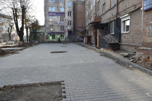 Окрім того, триває капітальний ремонт прибудинкової території на вулиці Федорова, 8. Двір та пішохідну зону тут укладають бруківкою, облаштовують пандуси, пониження для заїзду коляскою.