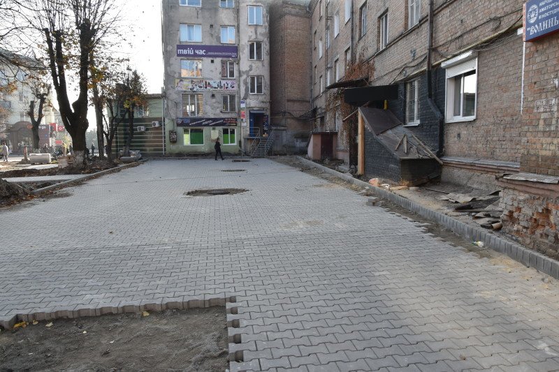 Відтак, посадовці ознайомились із ходом капітального ремонту прибудинкової території на проспекті Волі 3, 5, 7. Тут триває реконструкція скверу, що розташований на місці колишнього квіткового ринку. Пішохідні доріжки викладають бруківкою, проводяться комунікації для освітлення території, йдеться на сайті Луцької міської ради.