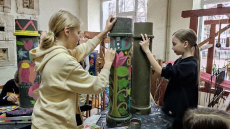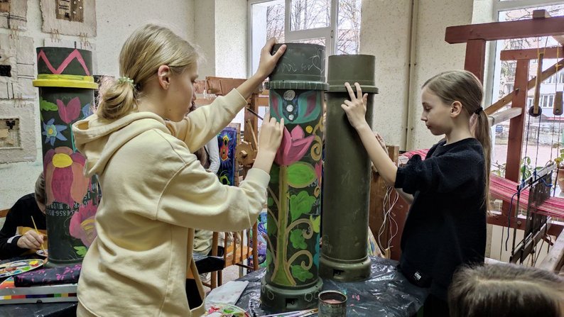 Зі слів Віри Конської, розмальовуючи тубуси, учні художньої школи роблять свій вклад у перемогу.