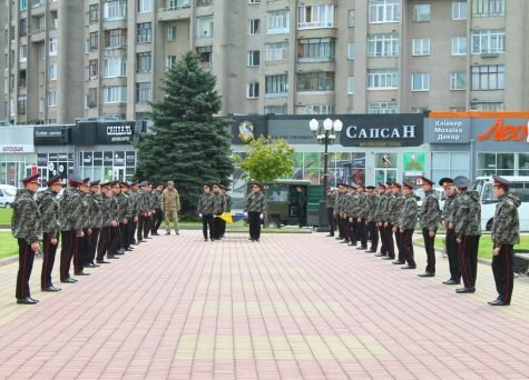 Опісля команди начальника обласного ліцею з посиленою військово-фізичною підготовкою імені «Героїв Небесної сотні» Павла Боснюка, ліцеїсти внесли стяги. Право підняти прапори України та ЄС надали губернатору Володимиру Гунчику, а також учням 11 класу гімназії № 4 Вікторії Назарук і Євгену Радчуку.