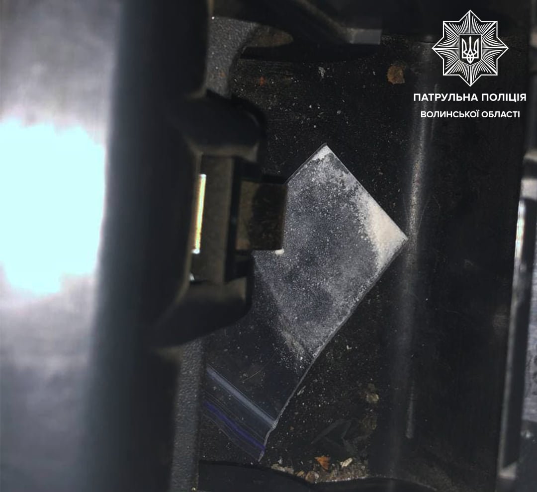 Під час поверхневої перевірки транспортного засобу поліцейські виявили пакетик з порошкоподібною речовиною, ззовні схожою на наркотичну, та предмет, схожий на пристрій для куріння.
