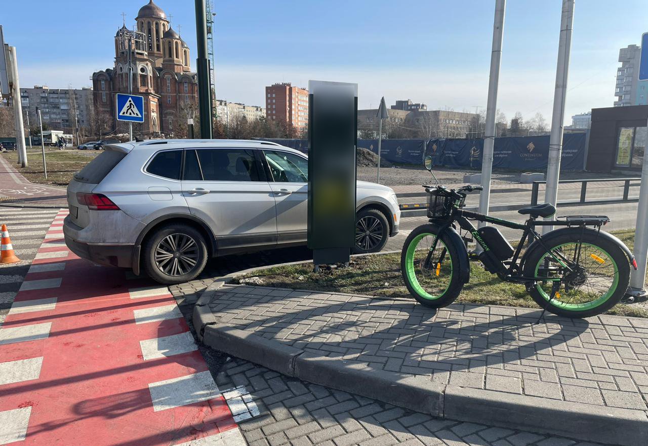 Згідно правил ПДД велосипедист має пішки перетинати пішохідний перехід та вести велосипед