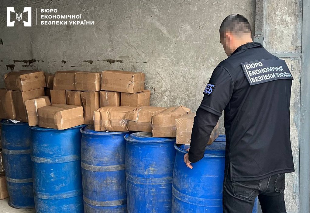 За результатами обшуків працівники БЕБ вилучили понад 2 тисячі літрів спирту та 200 літрів лікеро-горілчаних виробів у картонних коробах типу «bag in box».