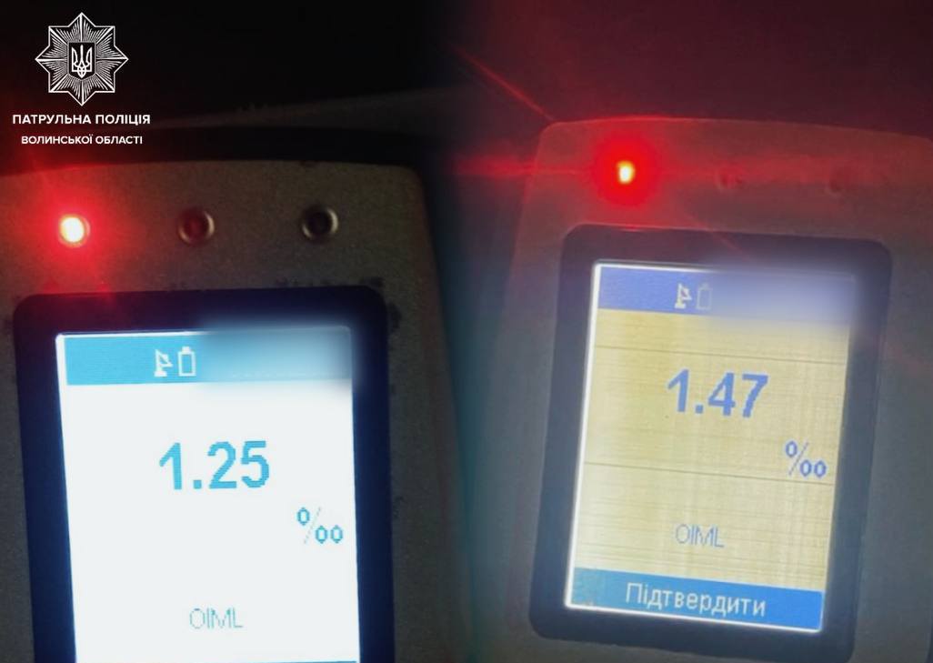Ще одного нетверезого керманича патрульні зупинили на вулиці Львівській. Огляд на стан сп’яніння за допомогою приладу «Драгер» показав 1,47 проміле.