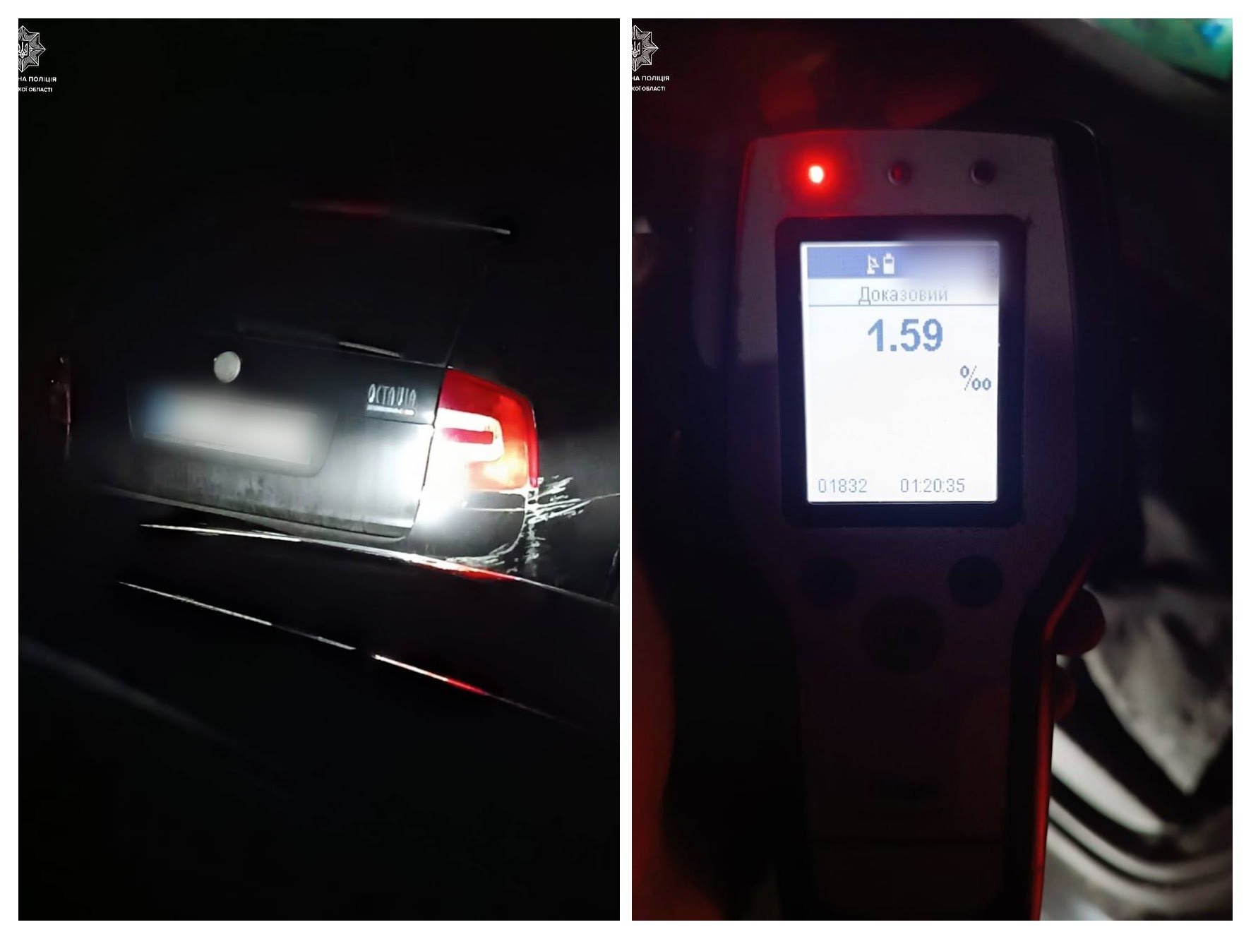 Під час спілкування поліцейські помітили у 24-річного чоловіка ознаки алкогольного сп’яніння. Керманич погодився пройти огляд на місці з використанням приладу «Драгер». Результат – 1,59 проміле.