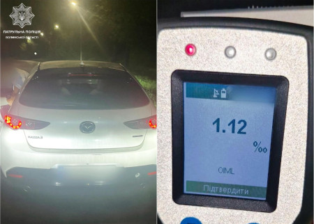 Чоловік погодився пройти огляд на місці за допомогою приладу Драгер. Результат – 1,12 проміле.