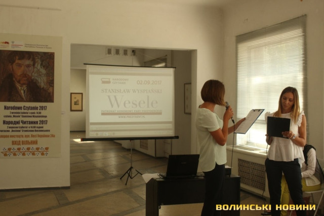 Декілька десятків осіб у Луцьку долучилися до акції «Національне читання» та зачитали в ролях уривки з п’єси «Весілля» польського письменника та драматурга Станіслава Виспянського польською мовою.
