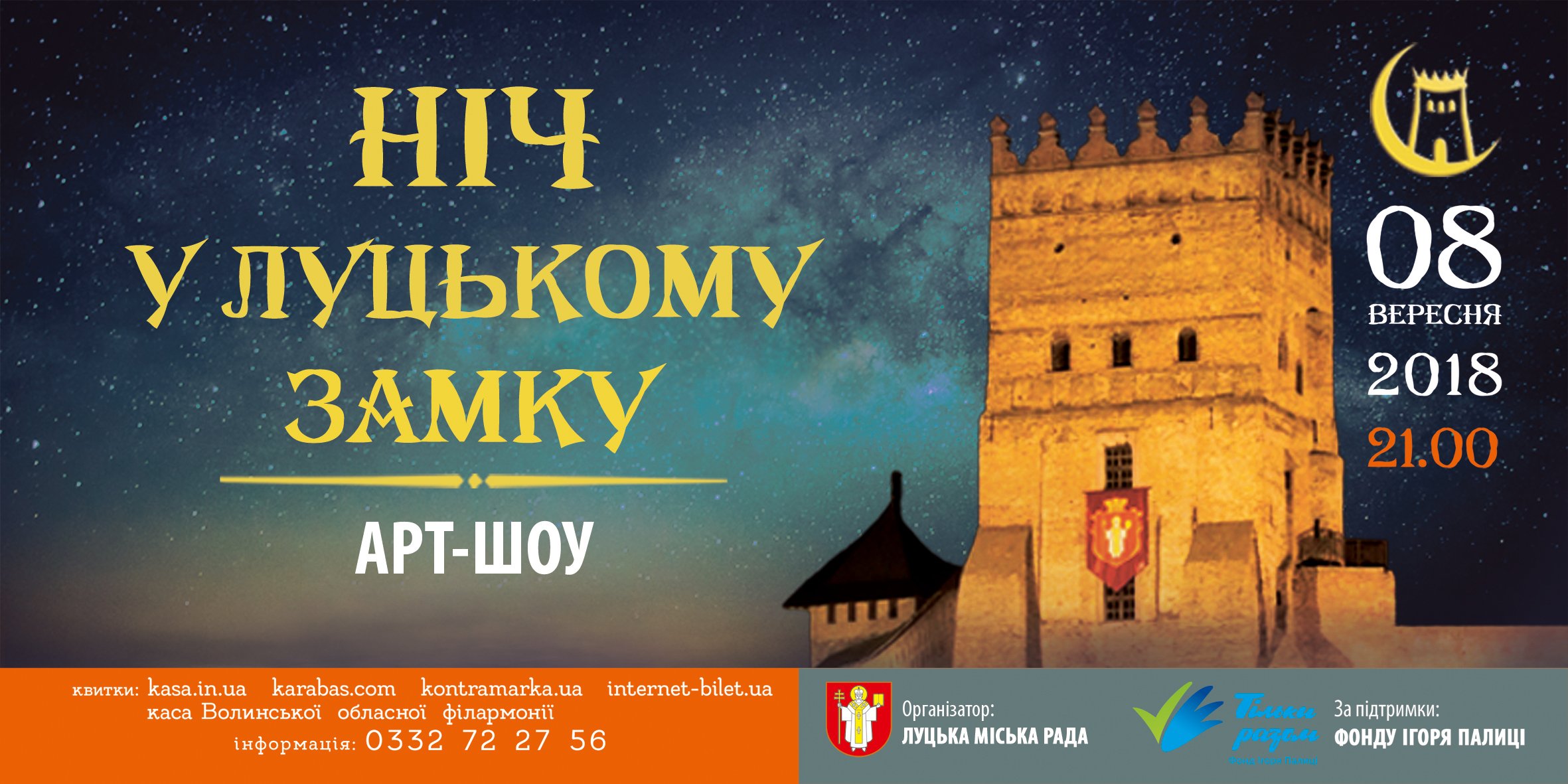 8 вересня 2018 року в рамках заходів з відзначення 933-ї річниці міста Луцьк вдесяте відбудеться феєричне дійство - арт-шоу «Ніч у Луцькому замку», повідомляють організатори.