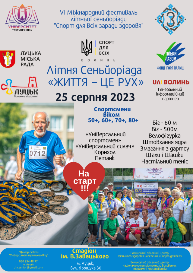 У Луцьку відбудеться VI міжнародний фестиваль літньої сеньйоріади «Спорт для всіх заради здоров’я»