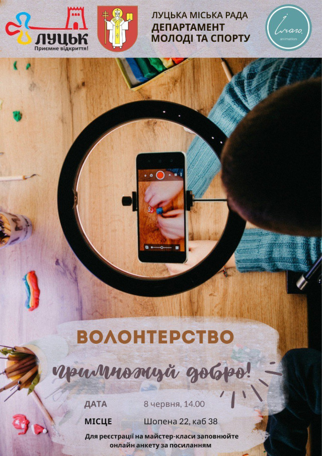 Департамент молоді та спорту Луцької міської ради спільно з ГО «ІМАГО» організовують майстер-клас із анімації для підлітків та молоді з тематики волонтерства.
