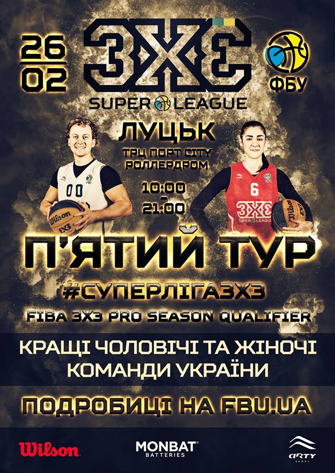 П’ятий тур Суперліги 3 на 3 відбудеться в обласному центрі Волині у вівторок, 26 лютого.