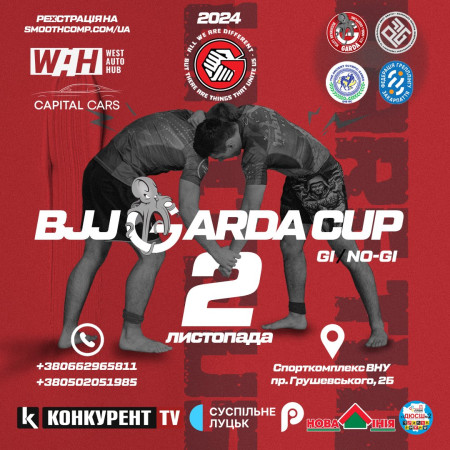 У суботу, 2 листопада, в Луцьку відбудеться Всеукраїнський чемпіонат із бразильського джиу-джитсу BJJ GARDA CUP 2024.