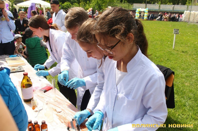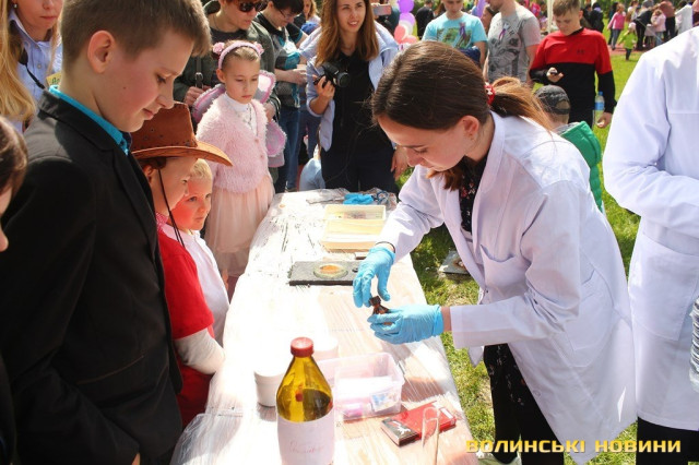 « В зв’язку з цим наш заклад уже давно вирішив переносити якісь навчальні моменти не в класні аудиторії, а, до прикладу, на вулицю, в музеї, цікаві заклади. От і сьогодні навчальний день відбувається на природі. Фестиваль родинної єдності - це освітянський хакатон, тобто спільне дійство за участі учнів, батьків, педагогів, адміністрації нашого закладу. Ми присвятили цей захід Дню матері і показали, що всі наші мами – чудові майстрині. Кожен клас представляє власний майстер клас. Тут і гончарство, і ляльки-мотанки, і вишиванки, і розписування печива, і світлові шоу, і вирізання різних коробок, тату, одним словом, різноманітні майстер-класи, які тільки можна побачити. Окрім цього, на святі відбуваються й наукові моменти – хімічні досліди, робототехніка тощо», - зазначила Ірина Афтеній.Натомість, директор Луцького НВК №9 Олександр Дубина наголосив, що в такому масштабі захід відбувається вперше не лише у Луцьку, а й в області.
