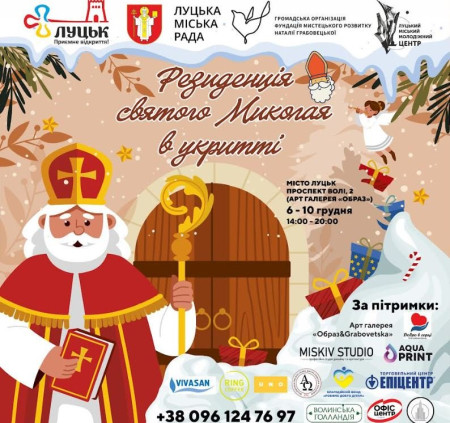 Резиденція Святого Миколая в укритті буде функціонувати у центрі Луцька з 6 до 10 грудня. Потрапити в неї можна через Арт-галерею «Образ», що за адресою проспект Волі 2.