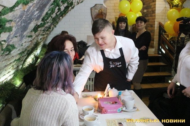 У Луцьку розпочала роботу перша в місті особлива кав’ярня, серед обслуговуючого персоналу якої – хлопці з синдромом Дауна.