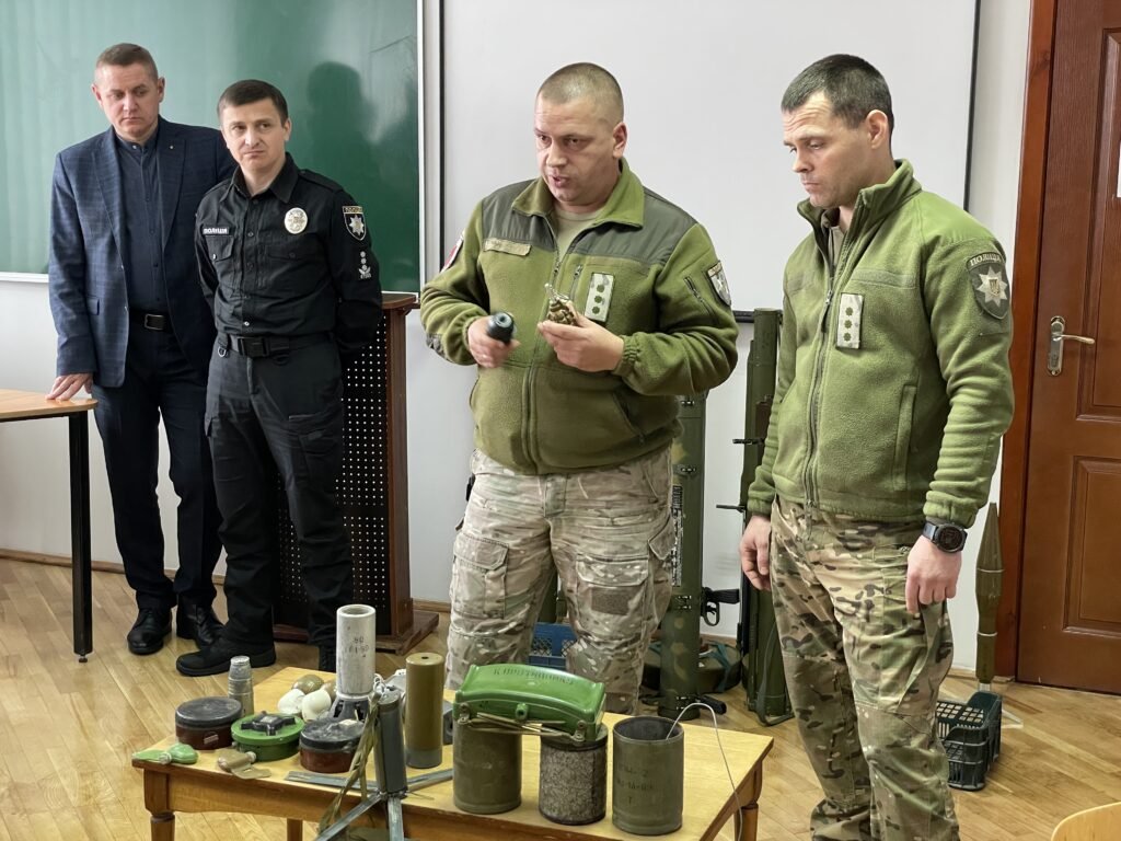 Співробітники вибухотехнічної служби ГУНП в області продемонстрували різновиди сучасних вибухових пристроїв, розповіли про їх небезпеку та заходи із запобігання ураження ними, а співробітники кінологічної служби спільно із надзвичайниками відтворили алгоритм дій у разі виявлення вибухонебезпечних предметів.