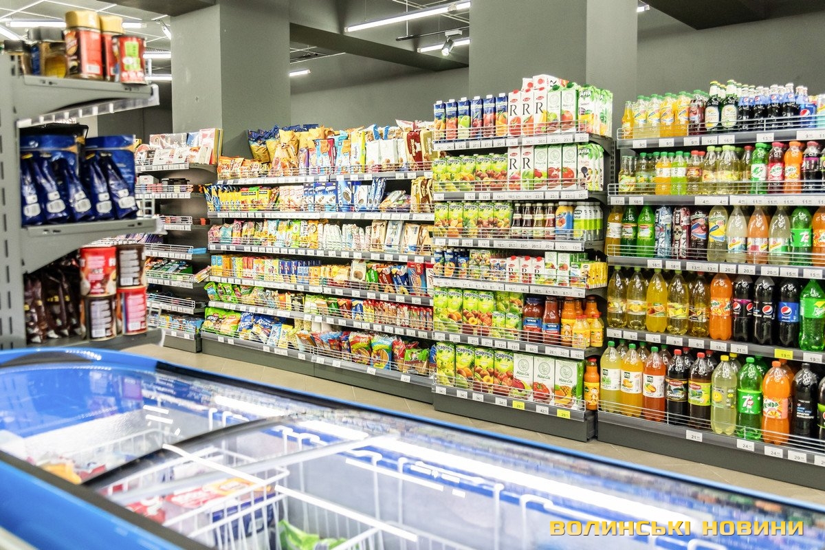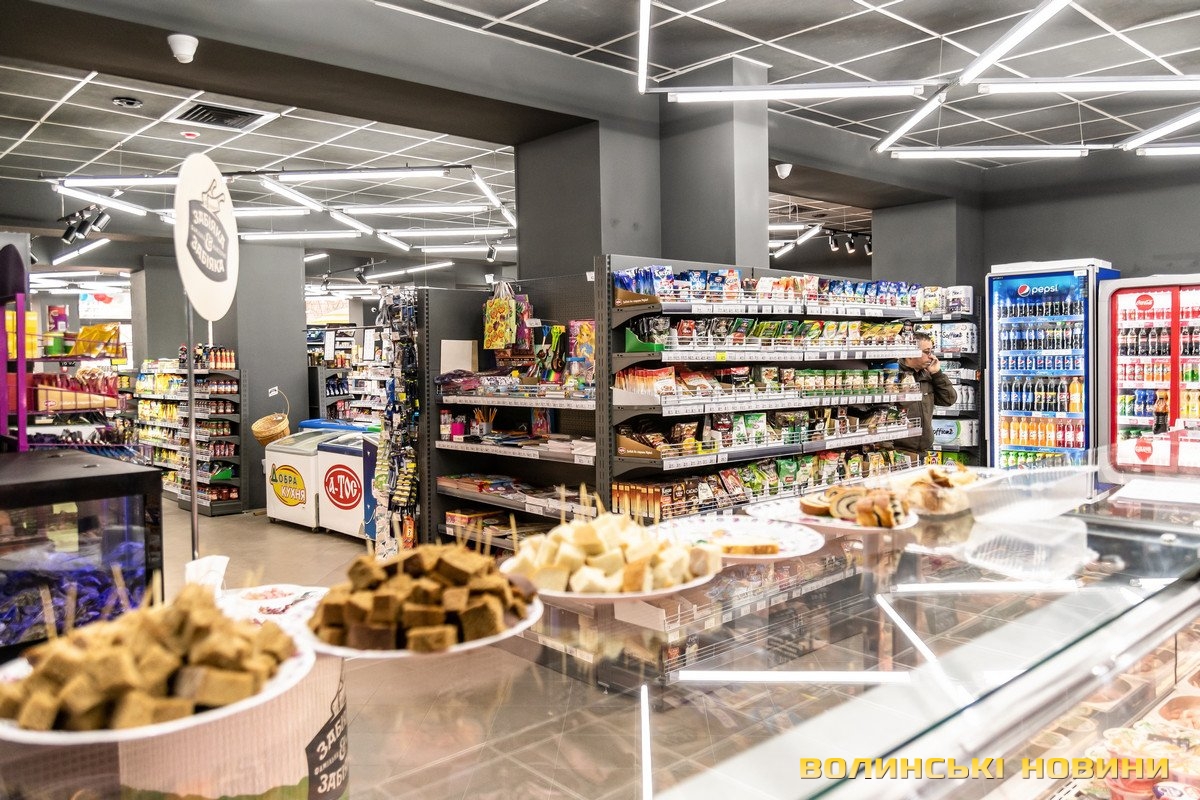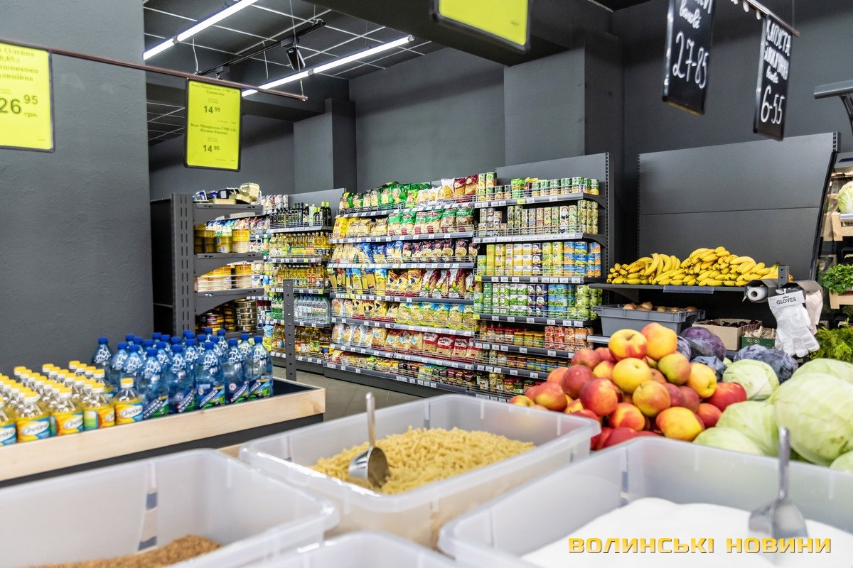 У торговому залі площею 212 квадратних метрів представлені 5 тисяч найменувань товарів. Асортимент звичний для супермаркетів – свіжі овочі та фрукти, молочні продукти, яйця, різноманітні ковбасні вироби та риба, бакалія, кондитерські й хлібобулочні вироби, соки і напої.