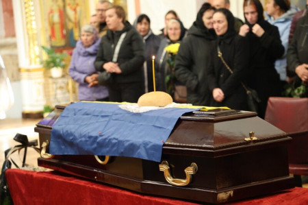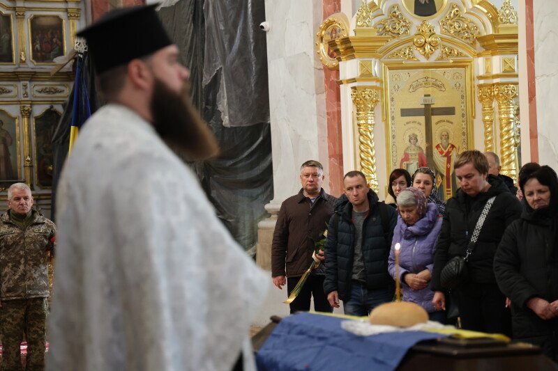 На відспівування військовослужбовця до храму прийшли родина, побратими, громадськість. Віддав останню шану воїну й секретар Луцької міської ради Юрій Безпятко.