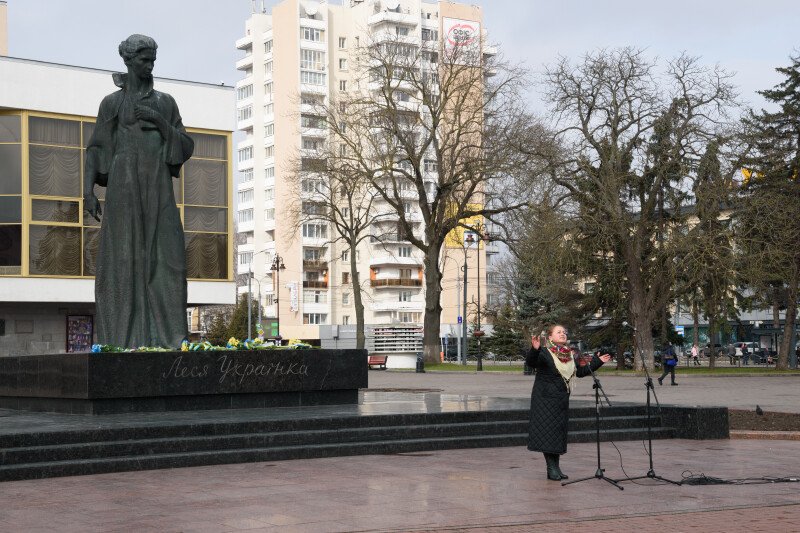 Після церемонії, в якій взяла участь заступник Луцького міського голови Ірина Чебелюк, на центральній площі міста прозвучали уривки з творів Лесі Українки.