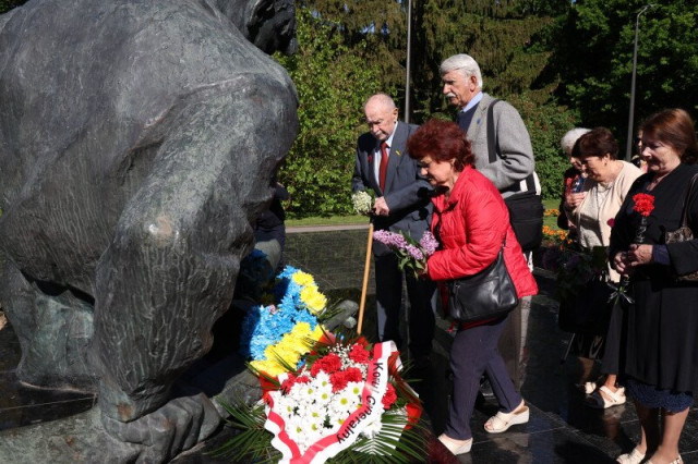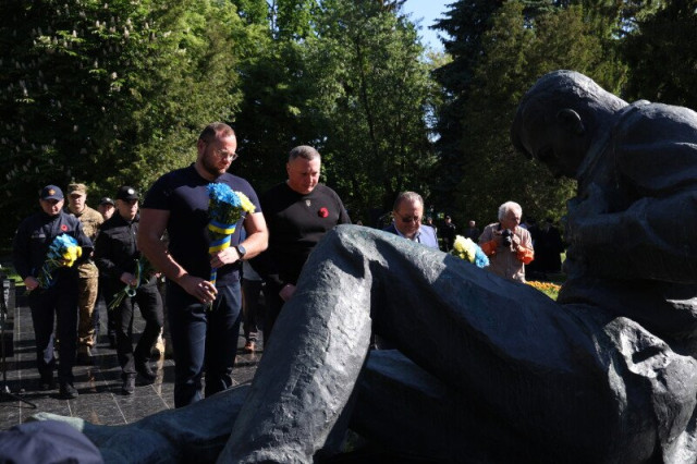 Із нагоди Дня пам’яті та перемоги над нацизмом у Другій світовій війні у Луцьку на меморіальному комплексі «Вічна Слава» відбулися пам’ятні заходи – панахида за загиблими та покладання квітів до пам’ятного знаку «Поранений солдат». Щоб віддати шану загиблим під час Другої світової та всім тим, хто, поліг, захищаючи Україну під час російського вторгнення, на меморіальному комплексі зібралася активна громадськість.
