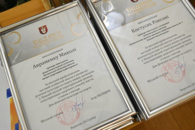 Запрошені на урочистість представники спортивної спільноти за значні спортивні досягнення та внесок у розвиток фізкультури і спорту міської територіальної громади отримали Почесні грамоти та Подяки Луцького міського голови. Ті, хто досягнув найбільших успіхів у спорті, отримали грошові сертифікати на 5000, 10000 та 20000 грн.
