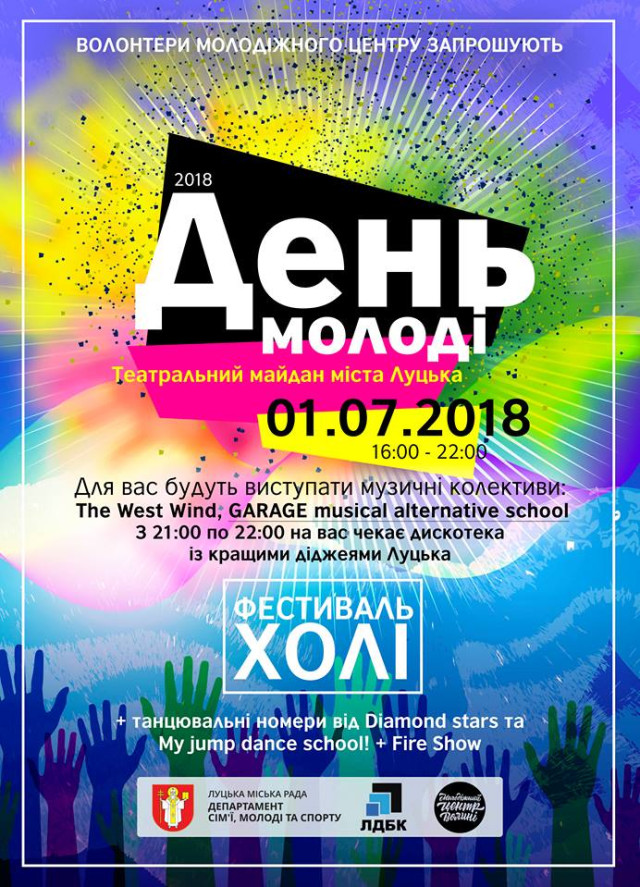 Департамент сім'ї, молоді та спорту Луцької міської ради та Молодіжний центр Волині за підтримки ПрАТ «ЛДБК» обіцяють барвисті та кольорові враження тим, хто прийде на холі-фест. До слова, придбати фарби можна буде власне на самому Театральному майдані, де і відбудеться батл кольорів.