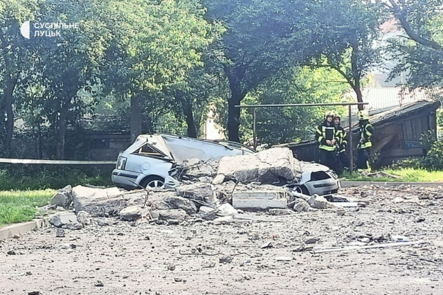 «В одному з під'їздів конструкції зруйновано по висоті, в іншому – руйнування. Для людей це жахливо. Остаточний висновок про придатність будинку робитимуть спеціальні служби», – додав Володимир Нестеров.Окрім того, пошкоджено транспорт та навколишні будівлі – приватні помешкання і дитсадок.Читати ще: Кількість постраждалих від атаки на Луцьк зросла до 15, – ДСНС Волині. Оновлено