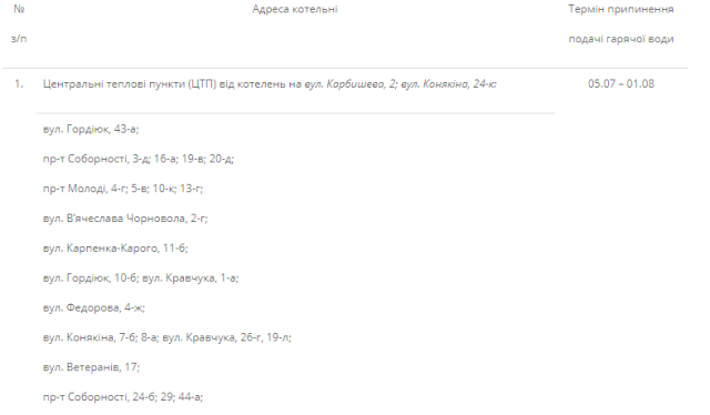 Так воду нарячу не подаватимуть взагалi!Яркий графiк,до Жовтня без води!