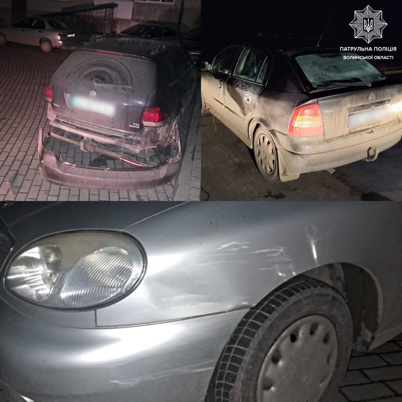 З’ясувалося, що водій автомобіля Nissan, рухаючись у дворі житлового будинку, в’їхав у три припарковані авто, після чого залишив місце події.