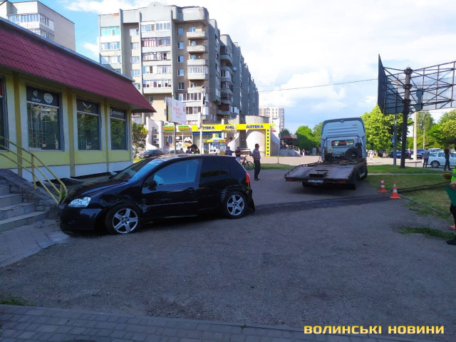 У Луцьку водій автомобіля Volkswagen влетів у сходи туристичного магазину «Миклухо Маклай».