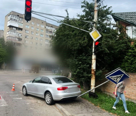 У Луцьку водійка, здаючи назад, виїхала на тротуар і збила дорожній знак