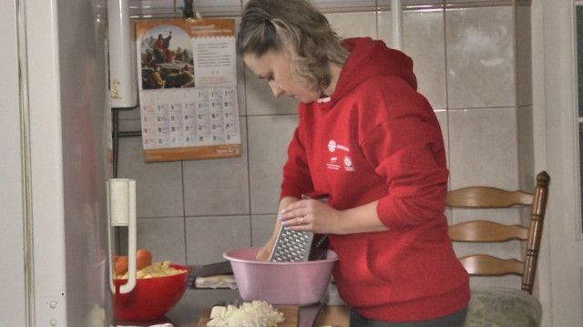 «Здебільшого ми готуємо суп або борщ. Має бути щось м’ясне, «костомашки», обрізи, якщо немає, то можуть бути солянка або макарони, якась крупа, щоб було густеньке», – каже Олена Жигуліна.Готують та доставляють «гарячі обіди» волонтери двічі на тиждень.