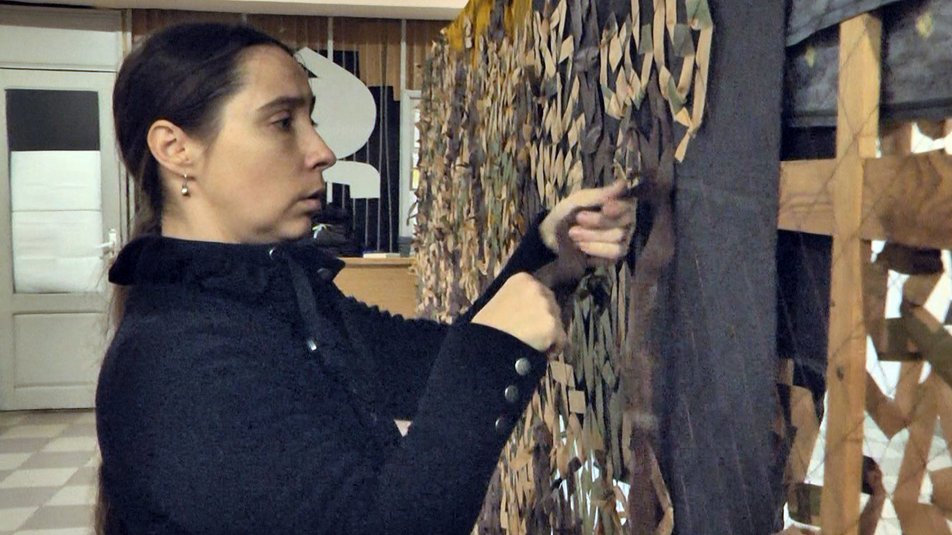 «Переважно усі зараз переходять на таку тканину. Тому що вона набагато легша і не так сильно замокає, швидше сохне», – каже переселенка.Тканину на сітки волонтерам дають благодійники. Іноді кошти збирають у соцмережах. Зараз волонтери працюють також над зимовими маскувальними сітками білого кольору.