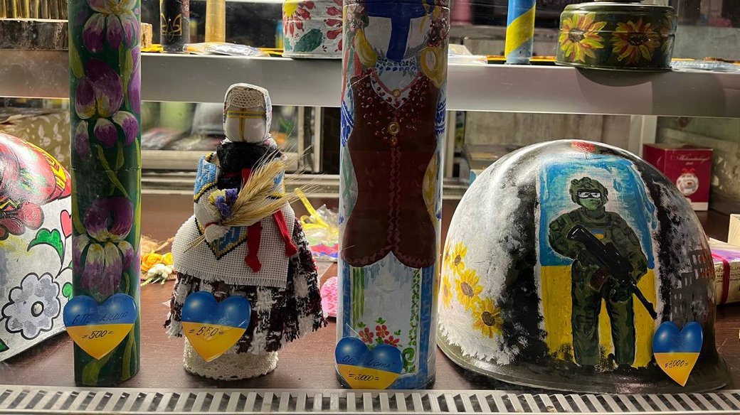 Вони розмальовують тубуси, військові каски та пишуть картини. Зі слів волонтерки Лариси Пінчук, ціни на сувеніри різні: найменша – 20 гривень, а найдорожчий наразі розмальований тубус від джавеліна за 30 тисяч гривень.Читати ще: Ліки, свічки та саморобний літальний апарат: з Луцька відправили допомогу військовим