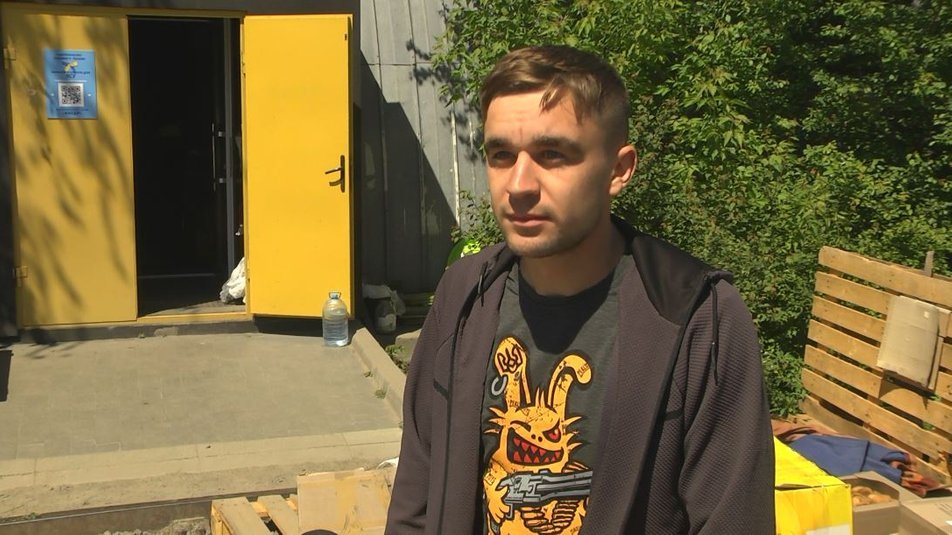 До «Ангару» в Луцьку за гуманітарною допомогою заїхали волонтери з Харкова Роман Євглевський та Дмитро Вергун. Для Дмитра це вже 14-та поїздка.