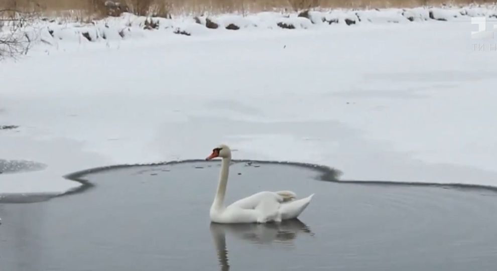 Через великий мороз на річці Стир, що на вулиці Ковельській в Луцьку, до криги примерз лебідь. На щастя, птаха вдалося врятувати.