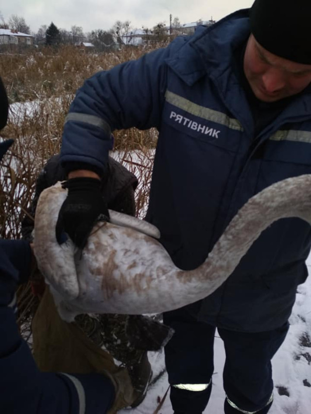 “Чергова варта аварійно-рятувальної частини Управління ДСНС у Волинській області сьогодні вранці визволила з крижаного полону лебедя, який примерз на водоймі поблизу Луцька на вулиці Ковельській”, – розповів Нестеров.