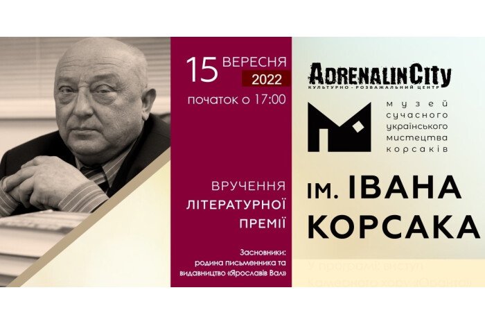 У Луцьку 15 вересня о 17:00 в Музеї сучасного українського мистецтва Корсаків вп’яте відбудеться церемонія вручення престижної літературної премії ім. Івана Корсака. Премію у 2018 році започаткувала родина письменника спільно з видавництвом «Ярославів Вал» задля розвитку історичного роману та увіковічення пам’яті Івана Корсака.