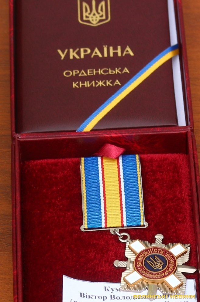 За особисту мужність, виявлену у захисті державного суверенітету та територіальної цілісності України, самовіддане виконання військового обов’язку Указом президента орденом «За мужність» 3-го ступеня нагородили старшого сержанта 24-го батальйону територіальної оборони «Айдар» Віктора Кумецького посмертно. Орден передали матері загиблого Героя Марії Лукашівні та дружині Руслані Володимирівні. Бійцеві був 41 рік, у зону АТО він пішов добровольцем, згодом був мобілізований. Загинув він на Луганщині під час бою у 2014 році. Спочатку був там похований як невідомий солдат, перепохований у 2015 році на Алеї почесних поховань. Рідним та близьким висловили вдячність за Героя.