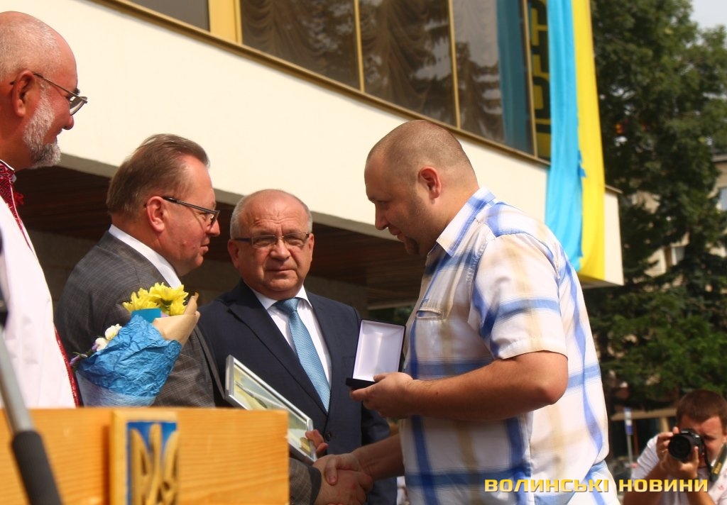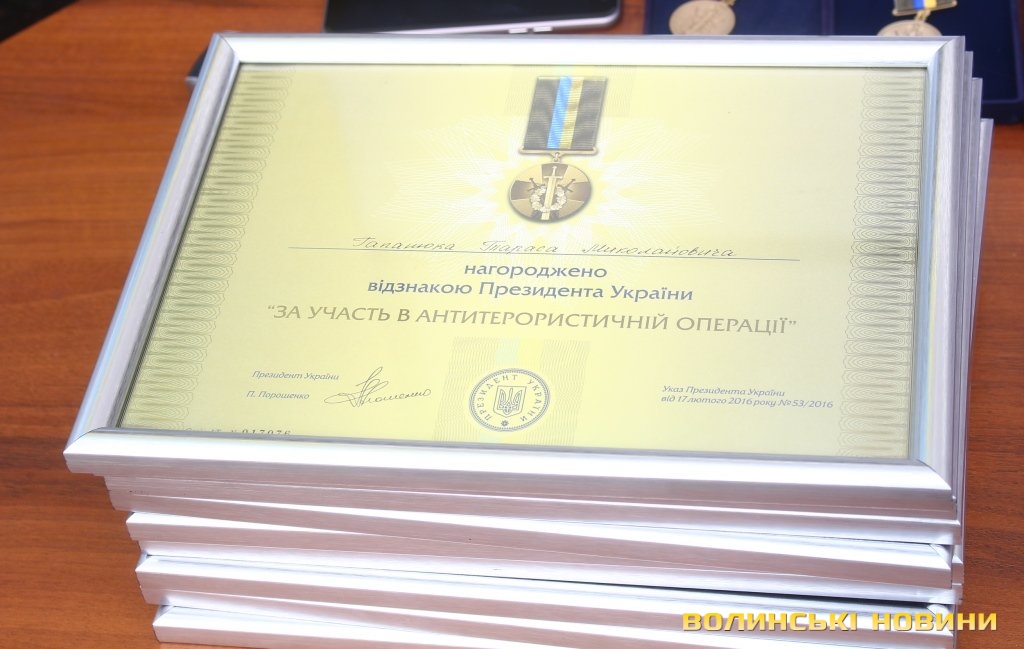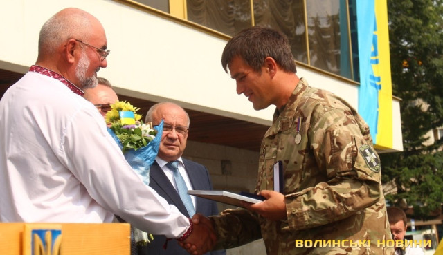 Державні нагороди атовцям-лучанам вручали виконувач повноважень Луцького міського голови Григорій Пустовіт, голова Волинської ОДА Володимир Гунчик та заступник голови Волинської облради Роман Карпюк.