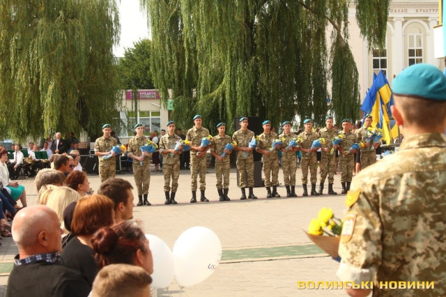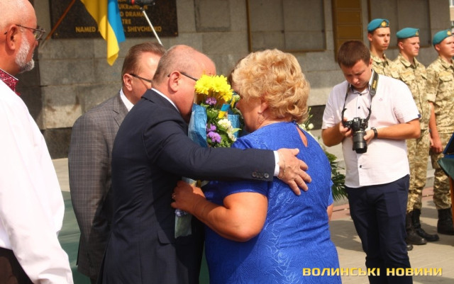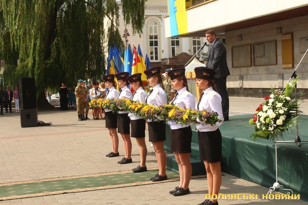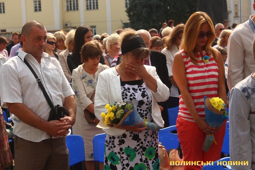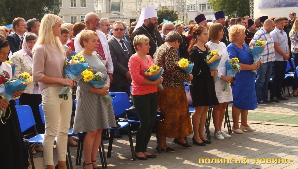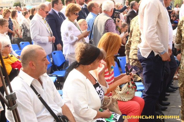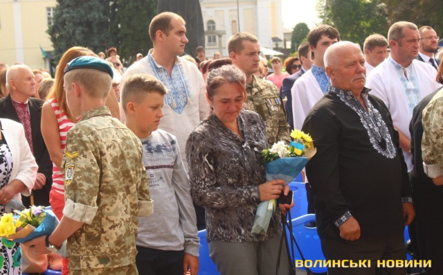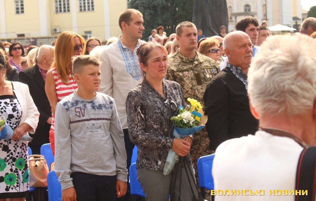 Ведучий заходу зауважив, що в останні роки Луцьк не надто часто усміхається – занадто багато болю містяни пережили, багато виплакали та вистраждали, ховаючи воїнів-героїв. На знак шани квіти подарували матерям, дружинам та дітям Героїв, які пожертвували життям заради кожного з нас – Героїв Небесної Сотні та полеглих воїнів-учасників АТО.