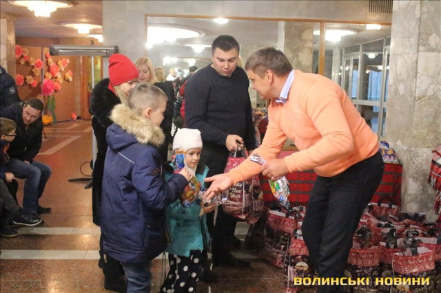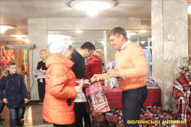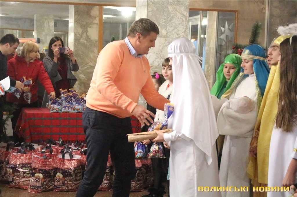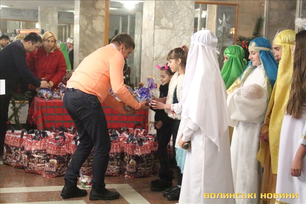 Так, до переліку тих, хто отримав подарунки увійшли сім’ї учасників АТО; сім’ї, що виховують дітей з особливими потребами; діти-сироти; діти позбавленні батьківського піклування; діти, які перебувають під опікою чи піклуванням, а також родини, які опинилися в складних життєвих обставинах.Усі гості благодійного заходу мали змогу насолодитися майстерно зіграним вертепом від вихованців із Центру молодіжної та дитячої творчості «Диво», а також поколядувати разом із його героями.Опісля директор Управління соціальних служб для сім'ї, дітей та молоді Луцької міської ради Ліна Галан привітала присутніх з прийдешніми та майбутніми зимовими святами, побажала здоров’я та благополуччя родинам.Вручив подарунки та продуктові набори лучанам депутат Луцької міської ради Сергій Була: