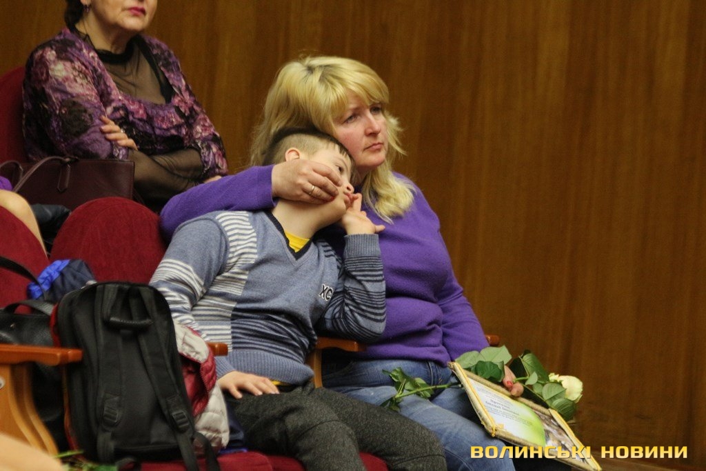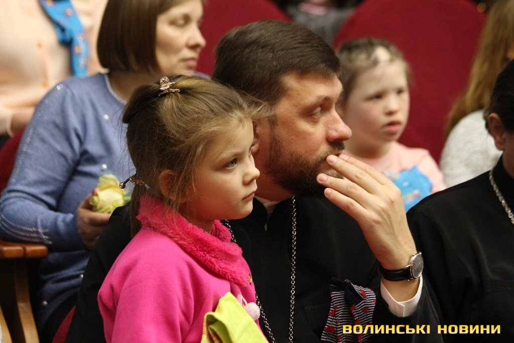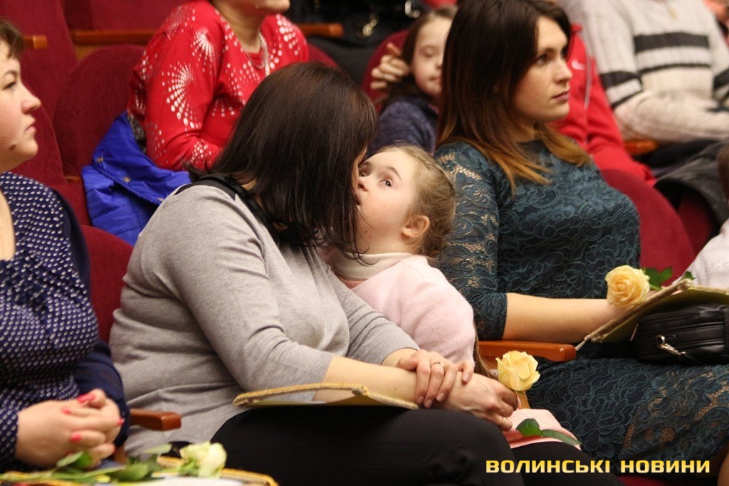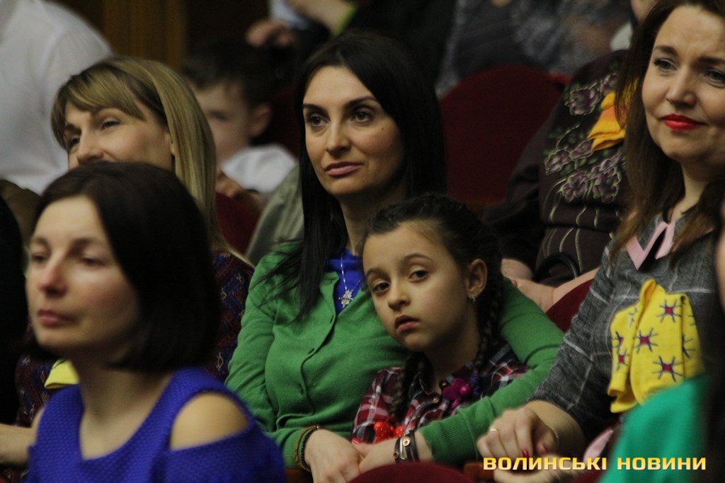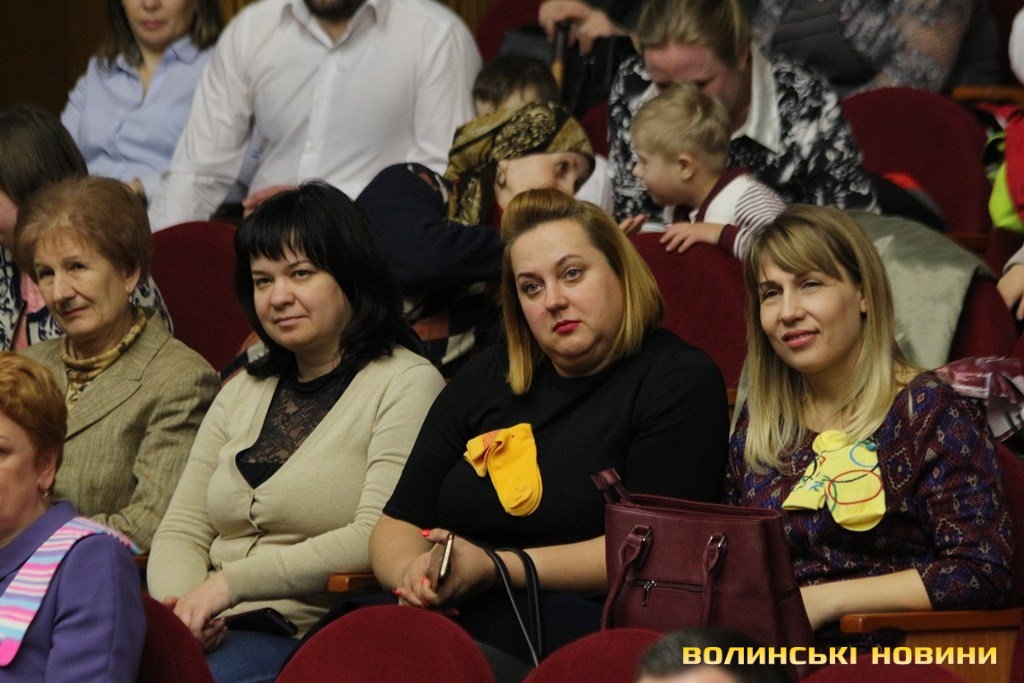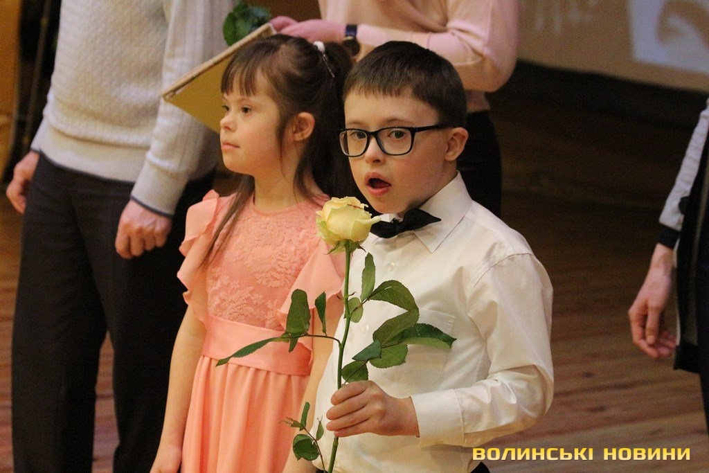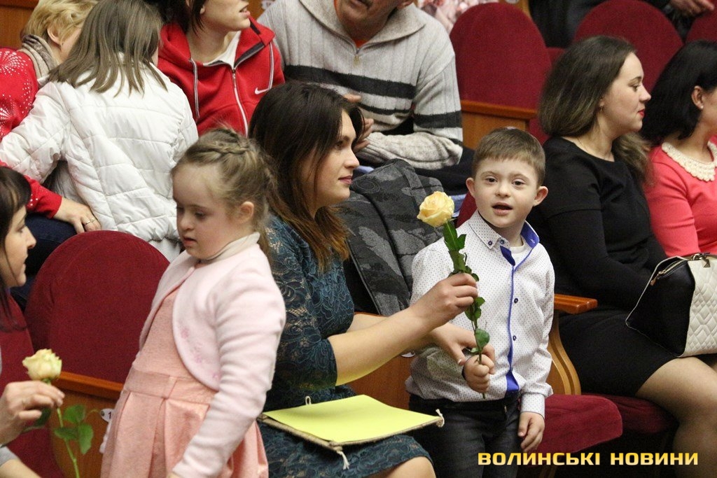 «Якби мікрофон поставили до мого серця, ви би почули його стукіт. Сьогодні із залу, від людей, які тут зібралися, йде світло, тепло. Наші сонячні дітки є надзвичайно добрими, талановитими. Коли ми їх вранці зустрічали ще сонних в стінах ОДА, це теж нам дало поштовх до уваги до них. Ми щиро дякуємо батькам, які не опустили руки, які постійно поруч із своїми дітьми. І коли бачиш очі і дітей, і батьків, що світяться добром, надзвичайним світлом, стаєш впевненим, що все буде добре. І, найголовніше – ми повинні навчитися толерантного ставлення один до одного. І сьогодні, коли по всій Україні відкривають інклюзивно-ресурсні центри, а в нас на Волині їх уже 19-ть – це також додаткова допомога для наших особливих діток. Дорогі батьки, не бійтеся віддавати дітей до школи, для того, щоб ми спільно з вами будували нашу Україну і наші дітки були щасливими», - звернулась до присутніх у залі заступник голови Волинської ОДА Світлана Мишковець.Також успіху, оптимізму та Божого благословіння побажав усім присутнім радник Луцького міського голови Ігор Поліщук: