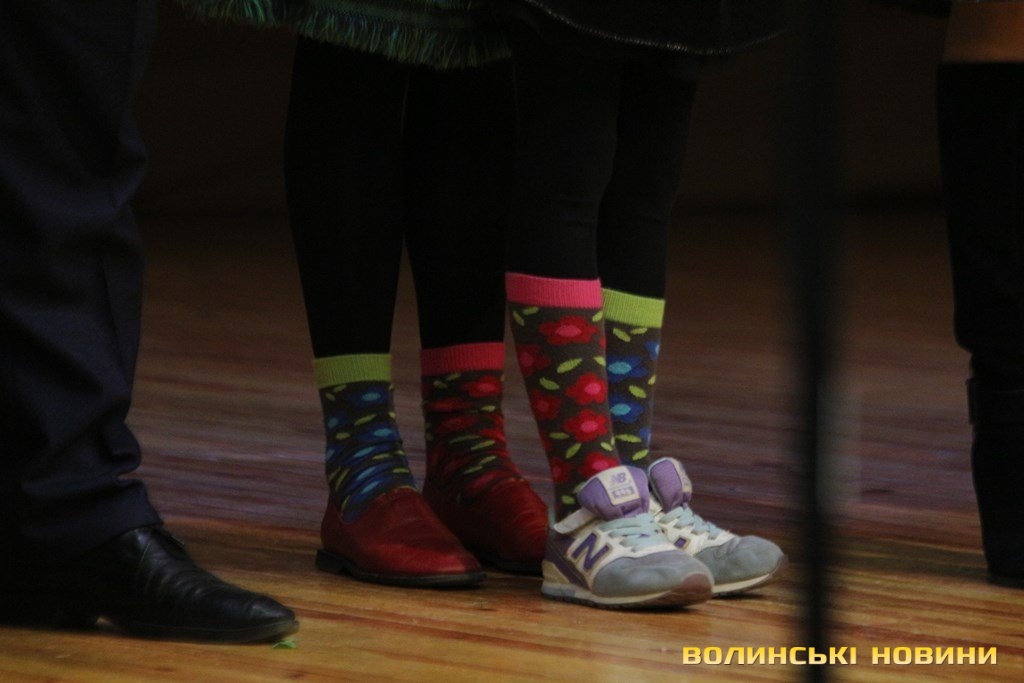 «Ми дуже тішимось від того, що сьогодні нас підтримує так багато людей. Прийшли підтримати своїх друзів дітки, які навчаються в школі №11, адже двоє учнів з синдромом Дауна навчаються у цій школі в інклюзивних класах. Нас підтримують 5-Б клас ЗОШ №12, а також Центр професійно-технічної освіти, де наш Андрій Мельник навчається на фотографа. Серед наших гостей - представники влади, благодійних та громадських організацій. Це означає, що наше суспільство потрошки змінюється на краще, тому що все більше людей розуміють, що нас усіх є багато в приємному різноманітті. До нашої акції «Багато кольорових шкарпеток» долучилось багато лучан. Давайте не забувати, що кожна особистість – це образ Божий. І ми усі повинні навчитися бачити красу людського божого створіння. На прикладі наших діток ми сподіваємось, що синдром Дауна – це не недолік, не перепона до нормального життя, а, навпаки, можливість відкривати нові здібності. Це інше світосприйняття», - зазначила очільниця ВОГО «Даун-синдром».Відтак, розпочалася церемонія нагородження.